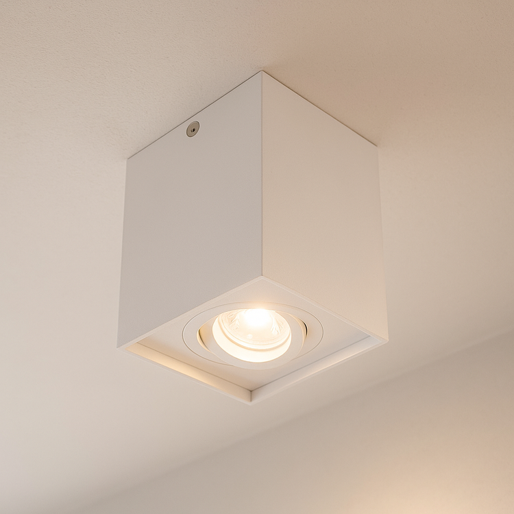 - The modern and elegant surface-mounted spotlight is characterized by an interesting and expressive cube-shaped form.
