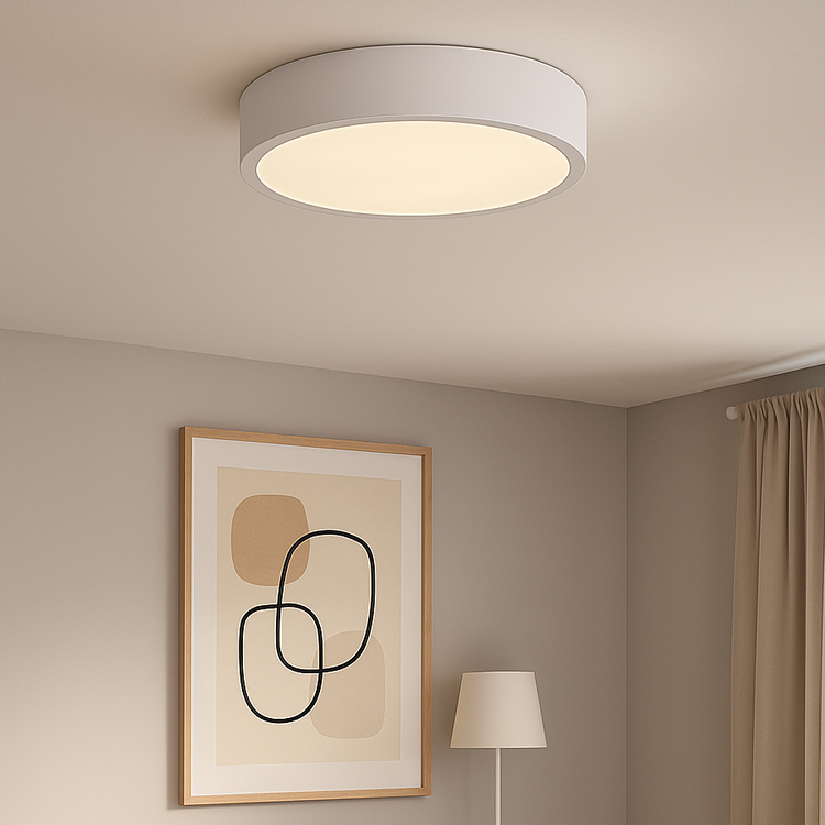 - Le boîtier du plafonnier est en bois et en verre dépoli (satiné), ce qui assure une répartition homogène de la lumière.