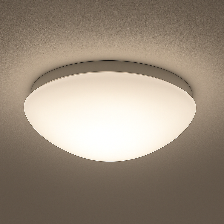 - Le plafonnier est simple et intemporel. L'abat-jour est en plastique blanc, à travers lequel la lumière brille indirectement vers l'extérieur.