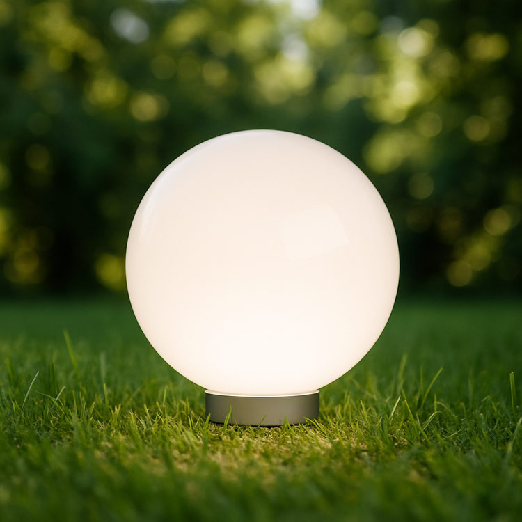 Elegantes Design – Milchweiße Kugel mit 30 cm Durchmesser, passt perfekt in jeden Garten.