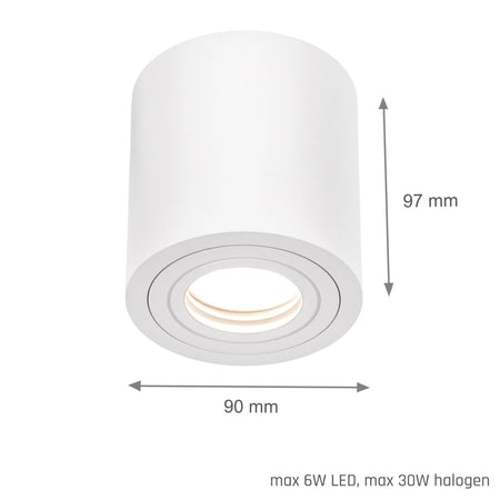 Aufbaustrahler für Außen- und Innenbereich | Rund | IP65 | Schwarz o. Weiß | GU10 | 230V | Dimmbar