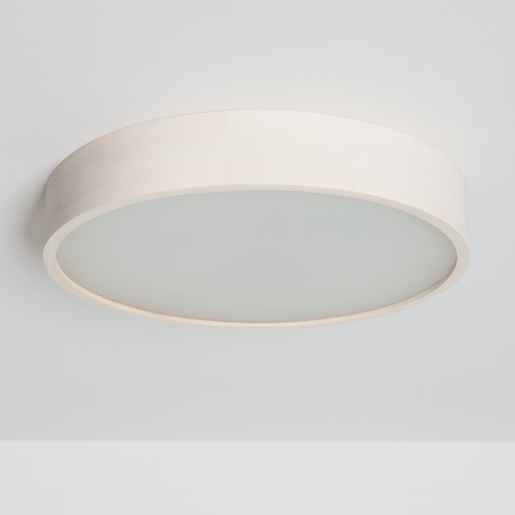 - Das Gehäuse der Deckenleuchte besteht aus Holz und geätztem (Satin-) Glas, was eine gleichmäßige Lichtverteilung gewährleistet.