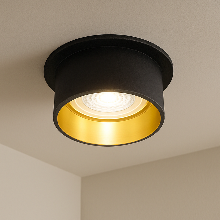 Die Einbauleuchte S B/G verleiht Ihrem Raum eine einzigartige Atmosphäre, dank der gelungenen Kombination von elegantem Schwarz und glänzendem Gold.