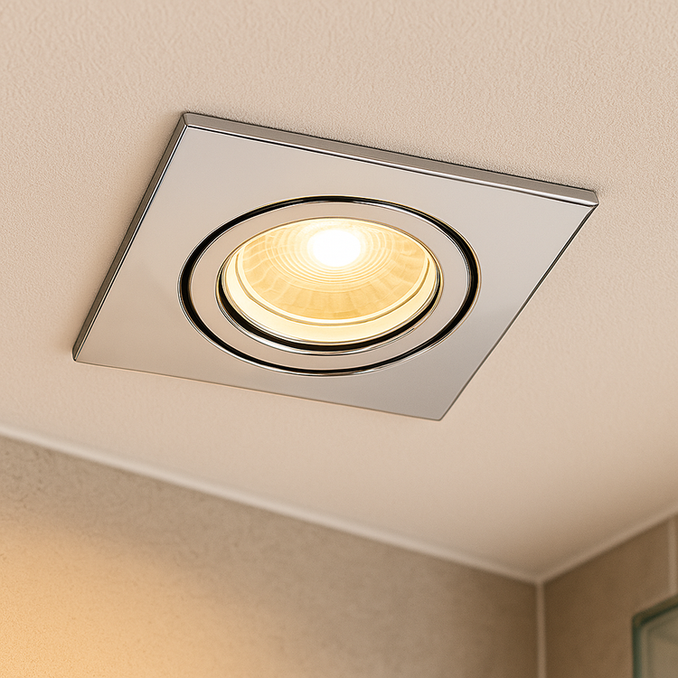 LED Einbaustrahler für außen und innen | Eckig 90mm x 90mm | Aluminium | IP44 | inkl. GU10 Fassung 230V | extra-flach | dimmbar