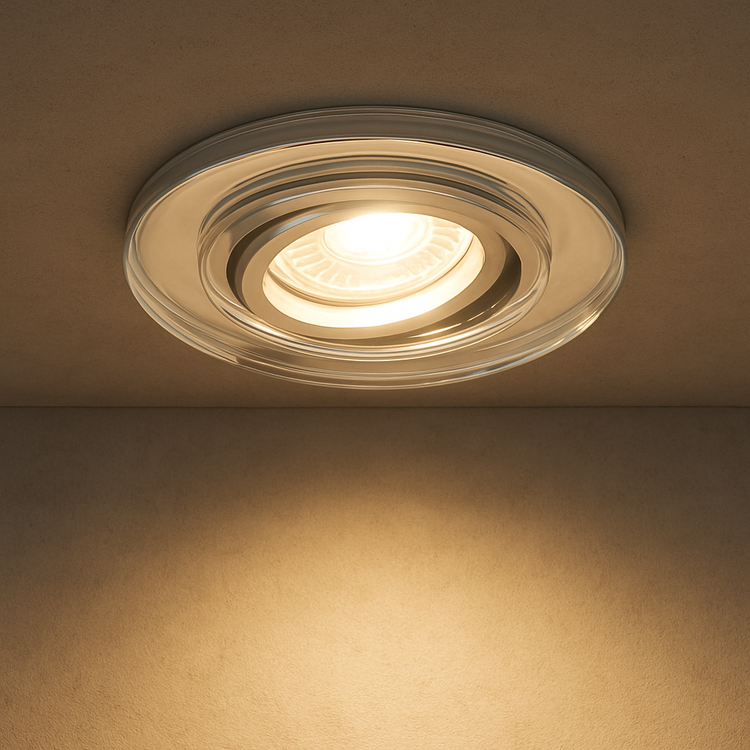LED Einbaustrahler aus Glas | Rund | Klar-Spiegel | Schwenkbar | inkl. GU10 Fassung | 230V | Cristal | extra-flach | dimmbar