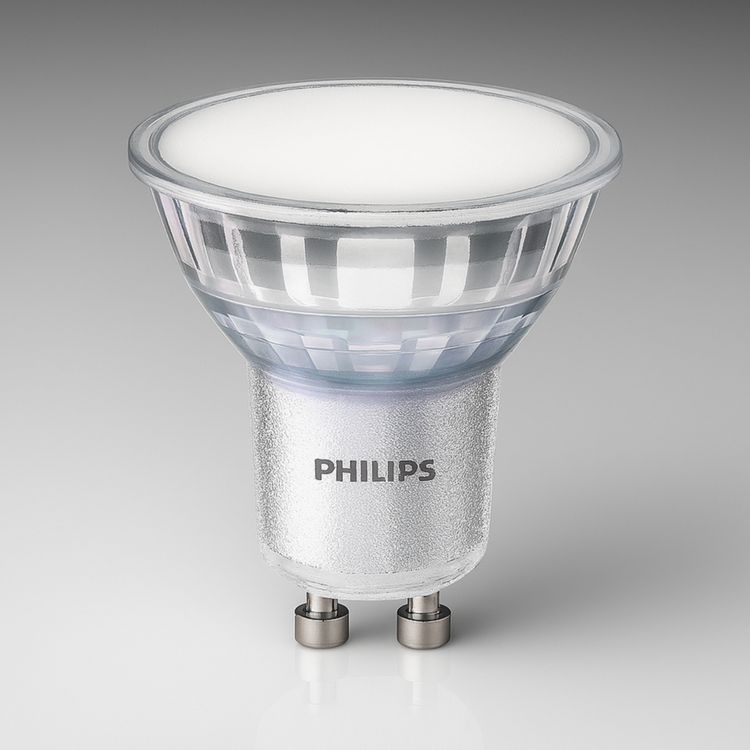 Dieses energieeffiziente LED-Leuchtmittel von PHILIPS ersetzt herkömmliche 50W-Halogenstrahler und bietet eine gleichmäßige, leistungsstarke Beleuchtung mit einem weiten 120° Abstrahlwinkel.